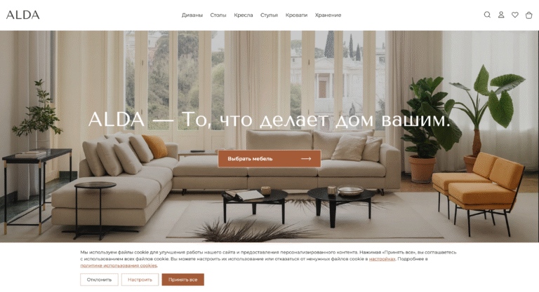 Интернет-магазин премиальной мебели и интерьеров с каталогом товаров от американских брендов. Фуллстек разработка.
