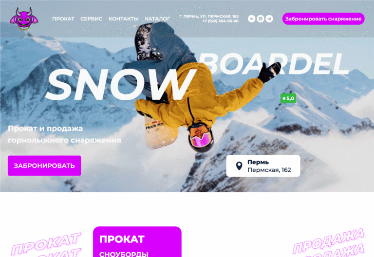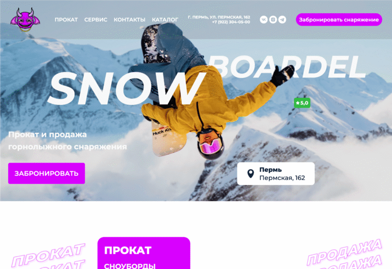 Сайт проката и продажи горнолыжного снаряжения с системой бронирования и каталогом товаров. Фуллстек разработка.