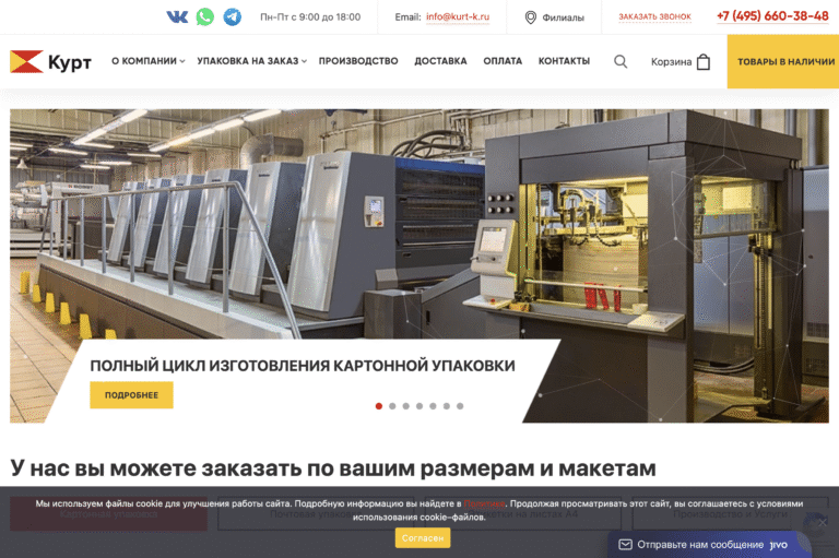 Сайт производственного холдинга по изготовлению упаковки с каталогом продукции, системой заказов и онлайн-витриной. Фуллстек разработка.